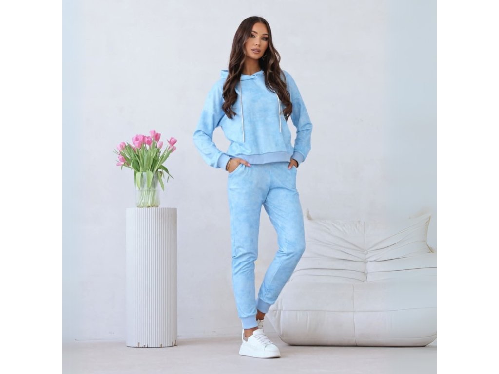 Moderní dámská souprava v mramorovém designu z měkkého a příjemného materiálu v oblíbené světle modré barvě.